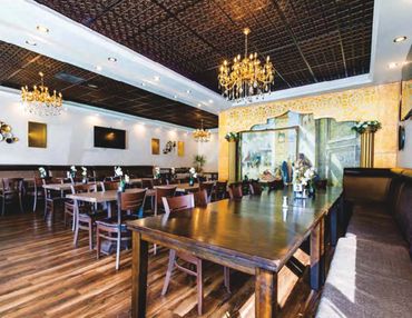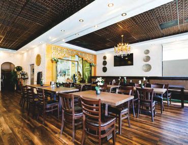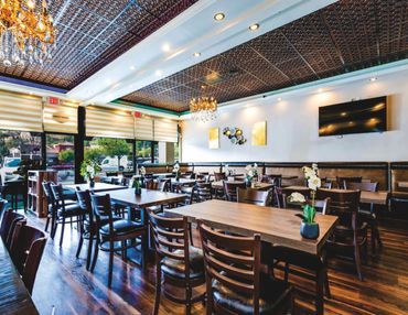 Enjoy your meal in an elegantly decorated space with a large seating capacity, ideal for family dinners, group gatherings, or casual dining.